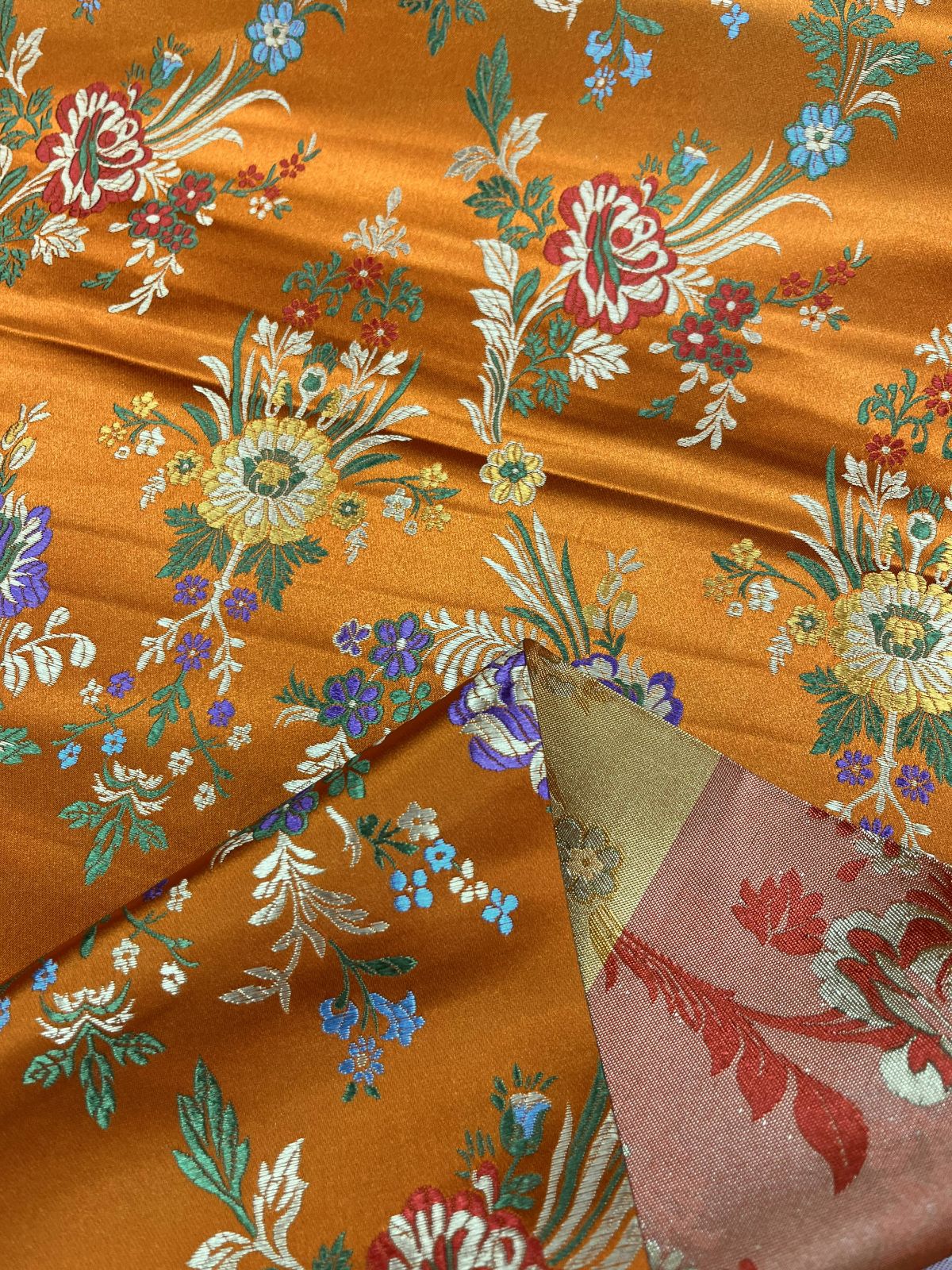 Burnt Orange Floral Jacquard Fabric