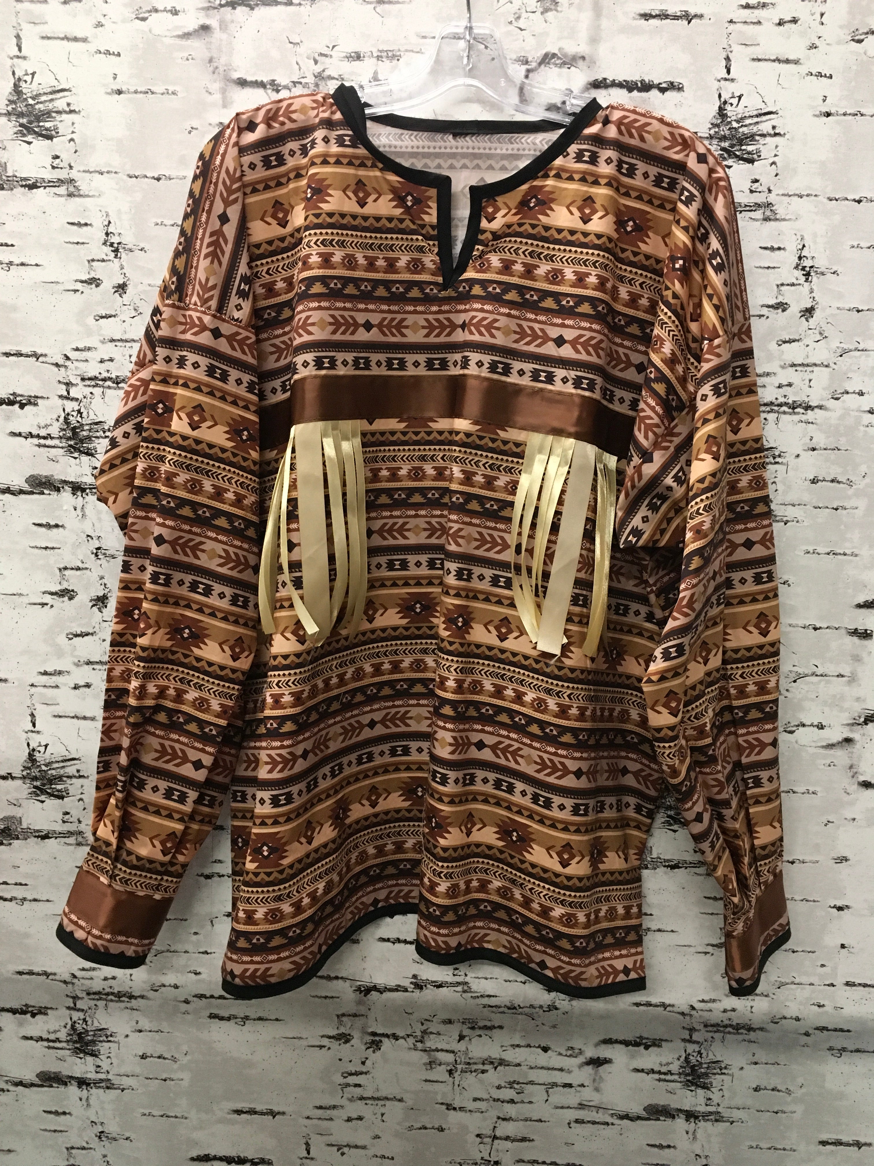 Handmade Ribbon Shirt AZTK Geometric w/ Brown & Beige Ribbon