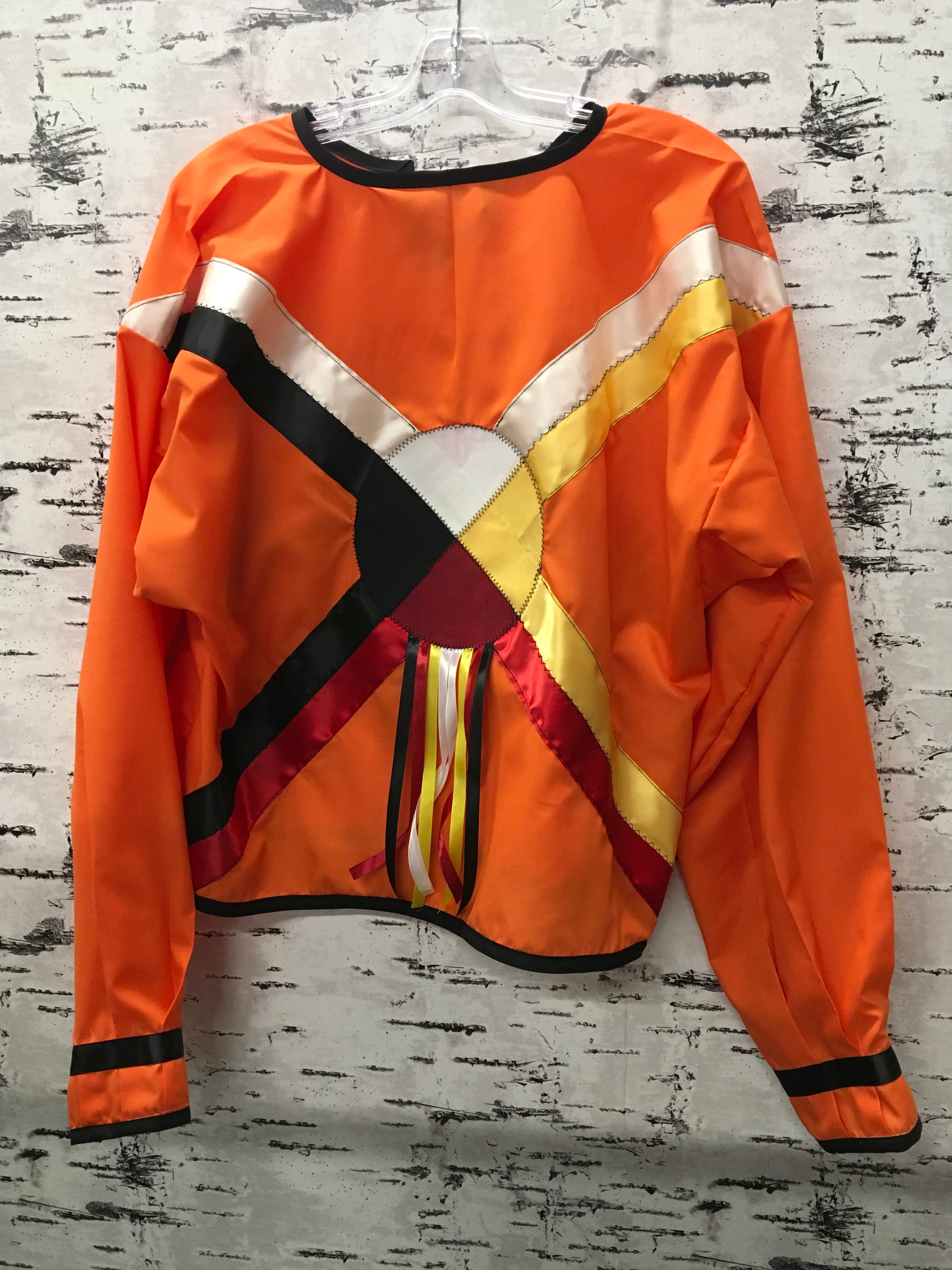 Handmade Ribbon Shirt Orange w/ Medicine Circle Back